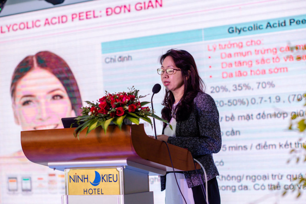 Một kinh nghiệm khác về hiệu quả trong điều trị nám da và tăng sắc tố sau viêm bằng PHA, Arbutin và Vitamin E (Tri-White Serum) của BS. CKI. Lưu Minh Hà (Kiên Giang). PHA có tác dụng kích hoạt chu kỳ đổi mới tế bào, loại đi các tế bào da chết, phục hồi lại sự mịn màng, tái tạo các tế bào da mới từ bên dưới; Arbutin có tác dụng ức chế sắc tố, có nguồn gốc từ thiên nhiên giảm hình thành sắc tố và Vitamin E giúp bảo vệ chống lại các tác hại từ tia tử ngoại trong ánh nắng mặt trời, hỗ trợ tích cực tác dụng chống nắng, các rối loạn tăng sắc tố sau viêm, các sẹo thâm sau mụn trứng cá, khắc phục các biểu hiện lão hóa da. Ngoài ra, Diễn đàn còn có các chia sẻ về quy trình trẻ hóa da bằng phương pháp tẩy tế bào chết với acid glycolic của Đại diện Công ty Hyphens Pharma và giải pháp hữu hiệu cho tình trạng sẹo và rạng da từ Đại diện Công ty Mega Lifesciences Việt Nam.
