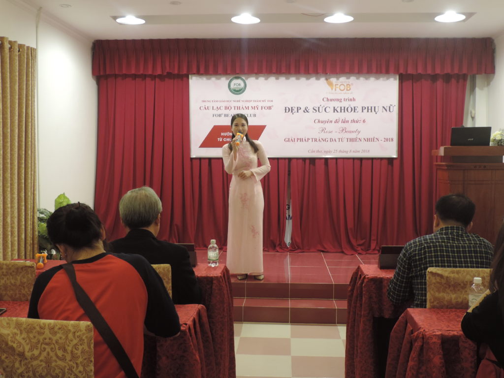 Hôm nay, vào lúc 9h00, ngày 25/8/2018, Tại hội trường Trung tâm GDNN Thẩm mỹ FOB đã diễn ra hội thảo câu lạc bộ “Đẹp & Sức khỏe phụ nữ” lần thứ 6 với chủ đề “Giải pháp trắng da từ thiên nhiên năm 2018” với sự phối hợp của Viện chăm sóc da FOB và Trung tâm GDNN Thẩm mỹ FOB tổ chức.