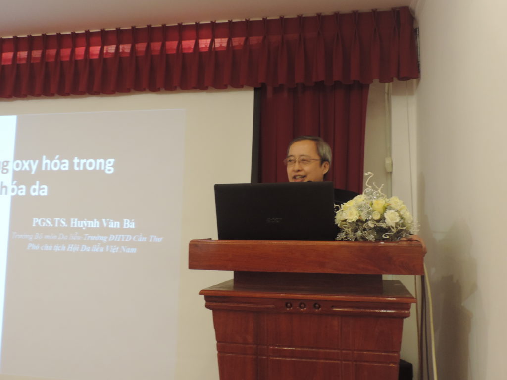 Trong hội thảo, PGS. TS Huỳnh Văn Bá – Phó chủ tịch hội Da liễu Việt Nam – Trưởng bộ môn Da liễu trường Đại học Y dược Cần Thơ chia sẻ về các chất chống oxy hóa trong chăm sóc trẻ hóa da như: PHAs (acid trái cây), Vitamin C, Arbutin. Đây là sự kết hợp có ích giúp làn da được bảo vệ dưới tia UV, giảm tình trạng mụn bùng phát, cải thiện nám da – tàn nhang. Bên cạnh đó, PGS. TS Huỳnh Văn Bá đã chia sẻ những thông tin về lợi ích của hoa hồng với chiết xuất hoạt chất chống lại 9 loài vi khuẩn và nấm, góp phần vào tác dụng chống oxy hóa. Thông qua buổi hội thảo PGS. TS Huỳnh Văn Bá đã cung cấp nhiều phương pháp chăm sóc da toàn diện cho quý chị em với bộ 3 sản phẩm chiết xuất từ hoa hồng như: FOB®BODY WHITENING LOTION, FOB®SỮA HỒNG TẮM TRẮNG, FOB®ROSE.