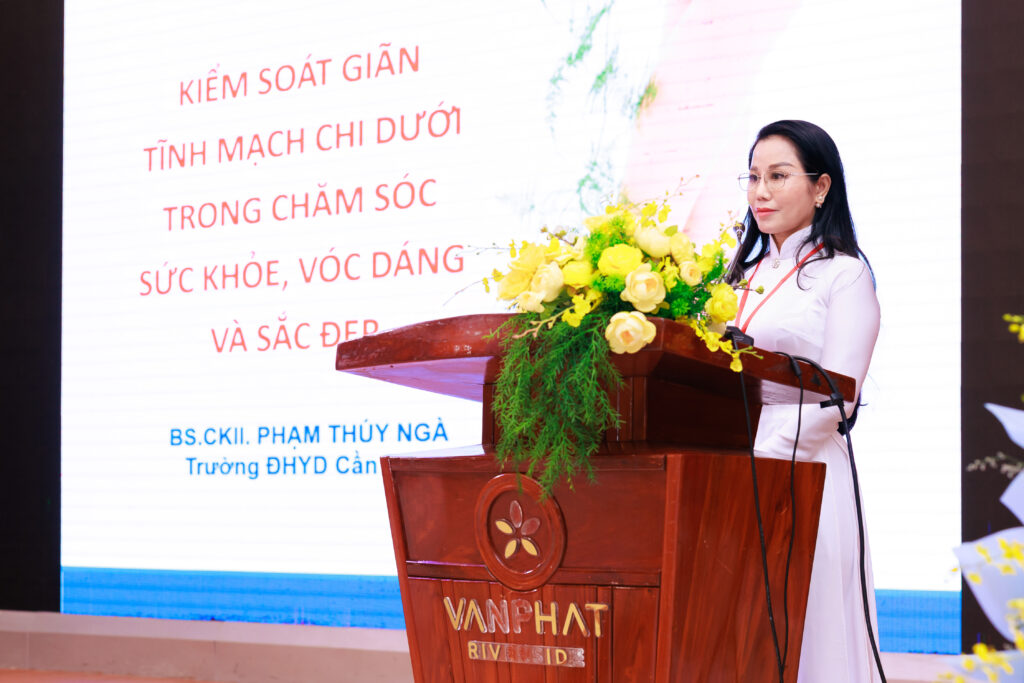Báo cáo chuyên đề 2: “Kiểm soát giãn tĩnh mạch chi dưới trong chăm sóc vóc dáng, sức khoẻ và sắc đẹp” do BS.CKII. Phạm Thúy Ngà – Giảng viên Bộ môn Da liễu – Bộ môn Phẫu thuật Tạo hình Thẩm mỹ – Trường Đại học Y Dược Cần Thơ trình bày.