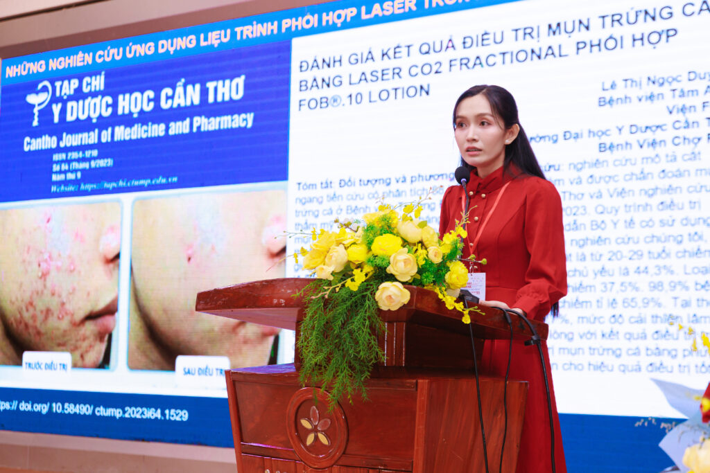 BS.CKII. Phạm Thúy Ngà – Giảng viên Bộ môn Da liễu – Bộ môn Phẫu thuật Tạo hình Thẩm mỹ – Trường Đại học Y Dược Cần Thơ trình bày báo cáo chuyên đề tại Diễn đàn