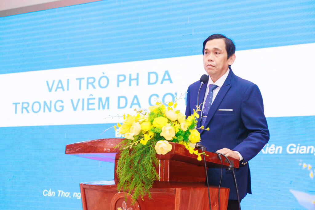 Báo cáo chuyên đề 1: “Ứng dụng một số hoạt chất trong chăm sóc da trị liệu: luận chứng khoa học & giá trị thực tiễn” do PGS.TS. Huỳnh Văn Bá – Trưởng Bộ môn Da liễu Trường Đại học Y Dược Cần Thơ – Phó Chủ tịch Hội Da liễu Việt Nam trình bày.