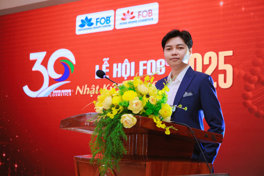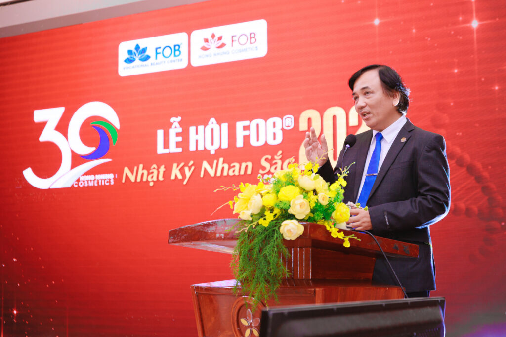 Phát biểu khai mạc Lễ hội, TS. Nguyễn Văn Nguyên – Giám đốc Công ty TNHH Mỹ phẩm Hồng Nhung, bên cạnh khẳng định giá trị của những thành tựu mà FOB đã xây dựng, TS. Nguyễn Văn Nguyên còn đặc biệt gửi lời cảm ơn đến PGS.TS. Huỳnh Văn Bá – Người đã đặt nền móng cho sự phát triển FOB trong hơn 30 năm qua; Đồng thời, ông cũng nhấn mạnh, vị trí của FOB có được hiện nay luôn có sự góp mặt của quý bác sĩ, quý khách hàng, quý doanh doanh nghiệp đã luôn tin tưởng và đồng hành cùng FOB trong suốt thời gian vừa qua. TS. Nguyễn Văn Nguyên cũng bày tỏ, với tất cả những niềm tin cho sự gắn kết lâu dài, giữa FOB và những đối tác, khách hàng của mình sẽ vần còn tiếp tục đồng hành cùng nhau trên những hành trình phát triển mới – Hành trình “Chăm sóc, vóc dáng, sức khỏe và sắc đẹp” hướng đến cộng đồng.